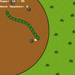A snake-like game with obstacles. Avoid the rocks or eat enough eggs to activate the smash ability.